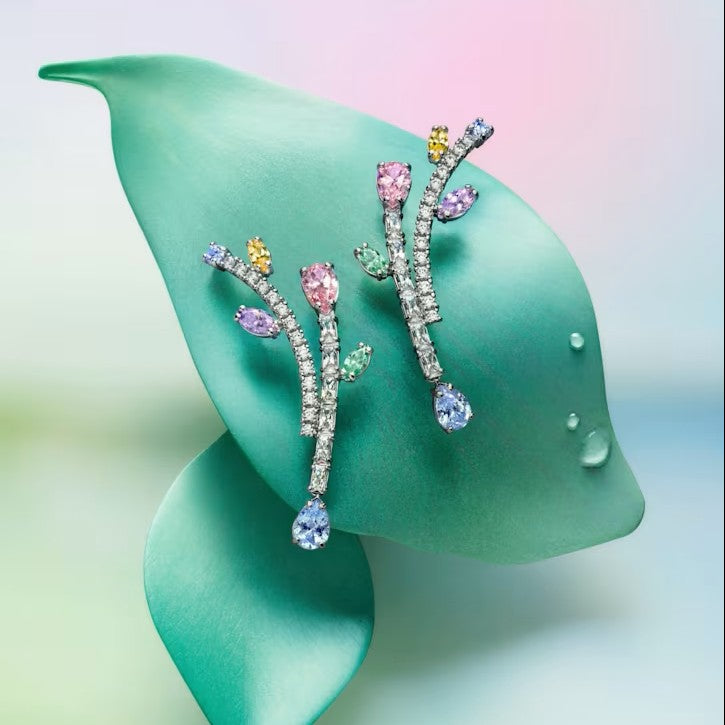 Gema Damla Küpe, Karişik Kesim, Avize, Uzun, Çok Renkli, Sari Altin Rengi Kaplama
