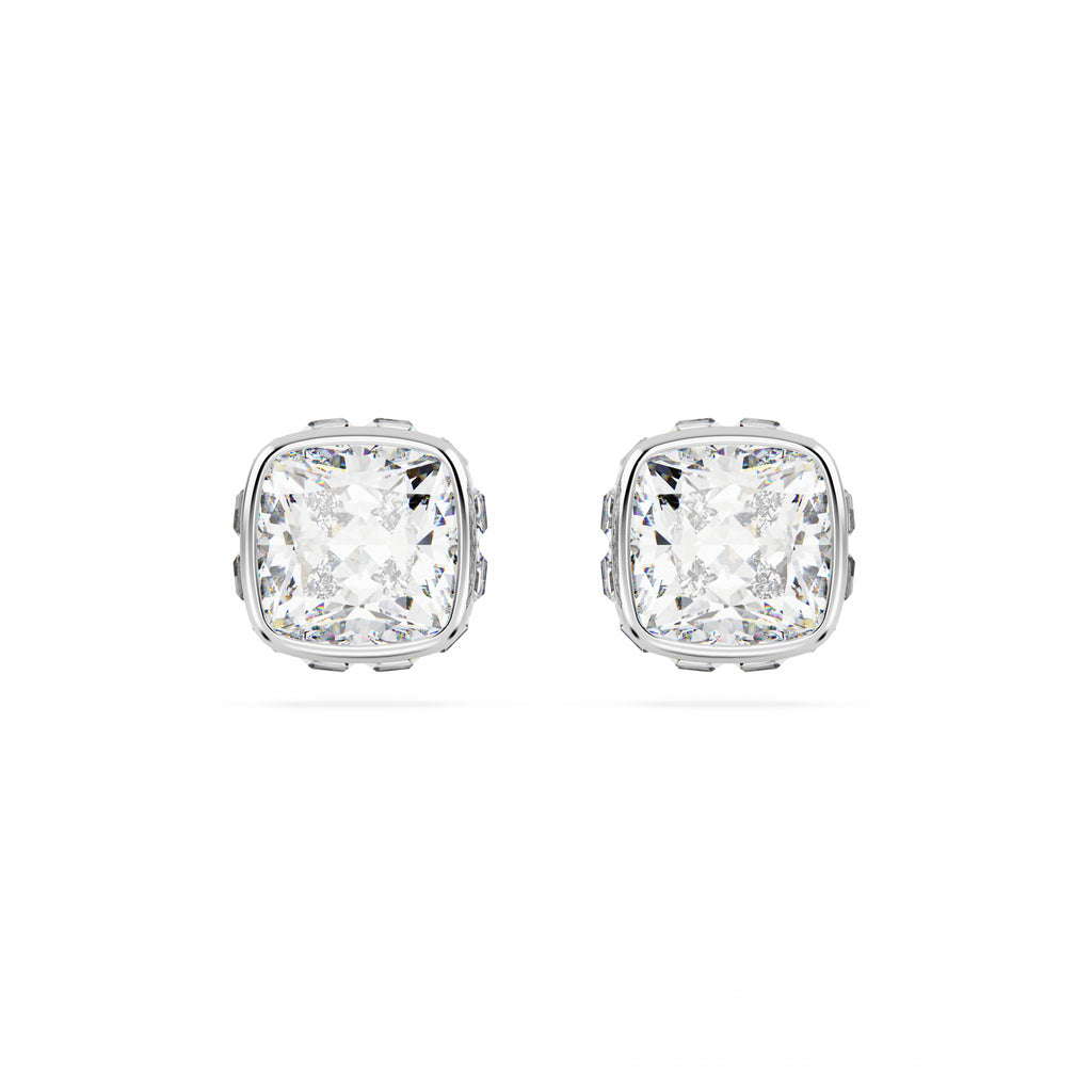 Birthstone Düğme Küpe, Kare Kesim, Nisan, Beyaz, Rodyum Kaplama 5661957