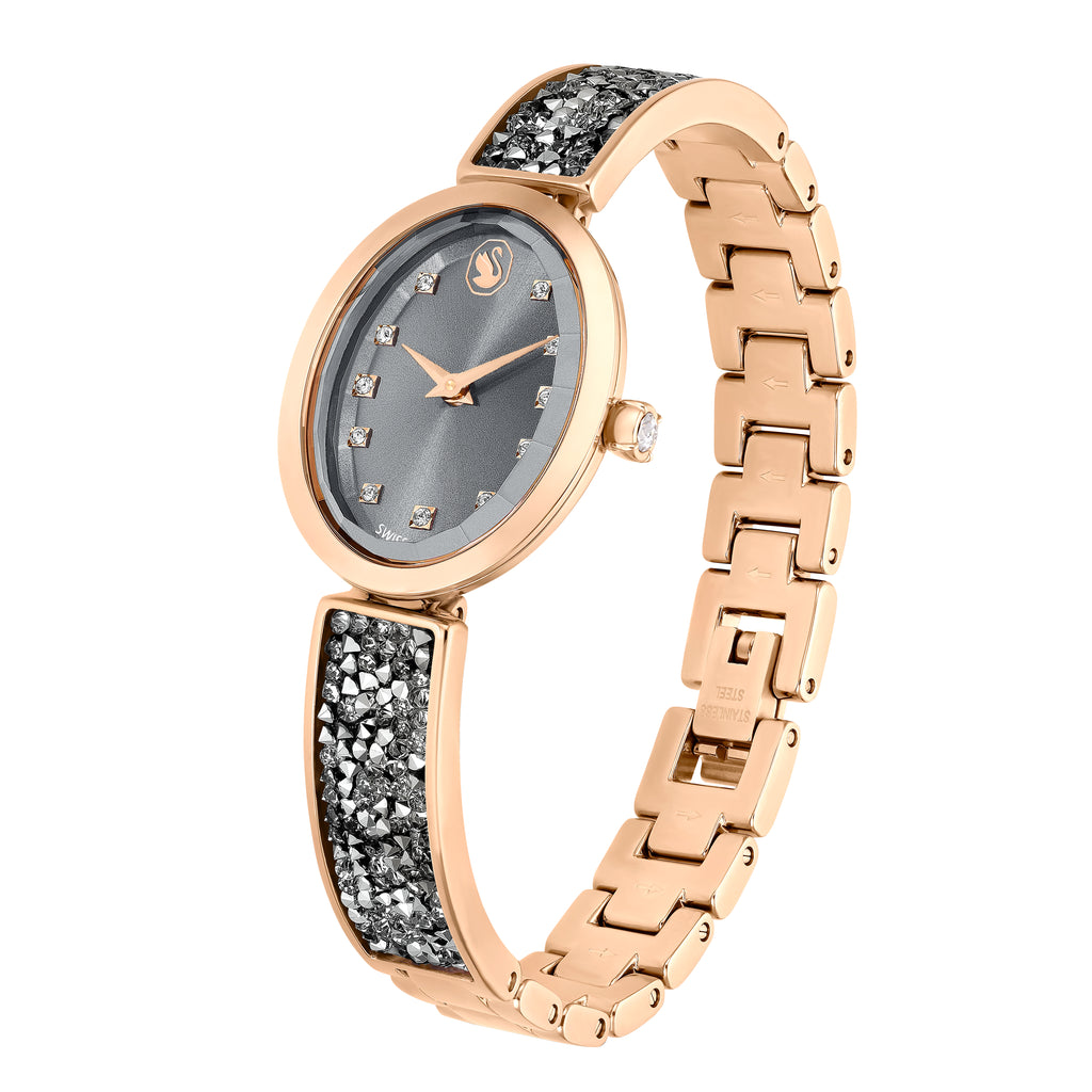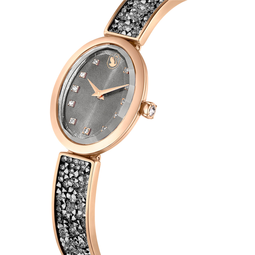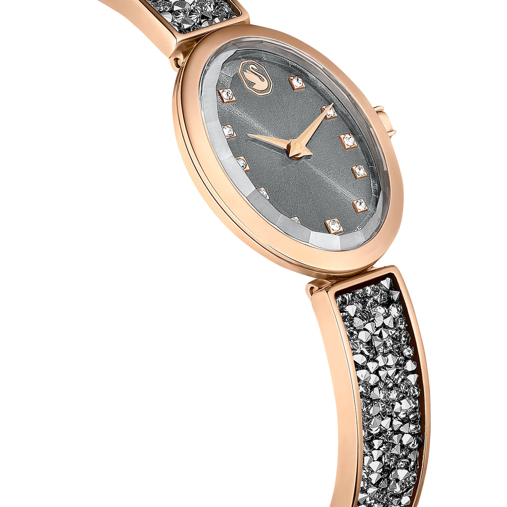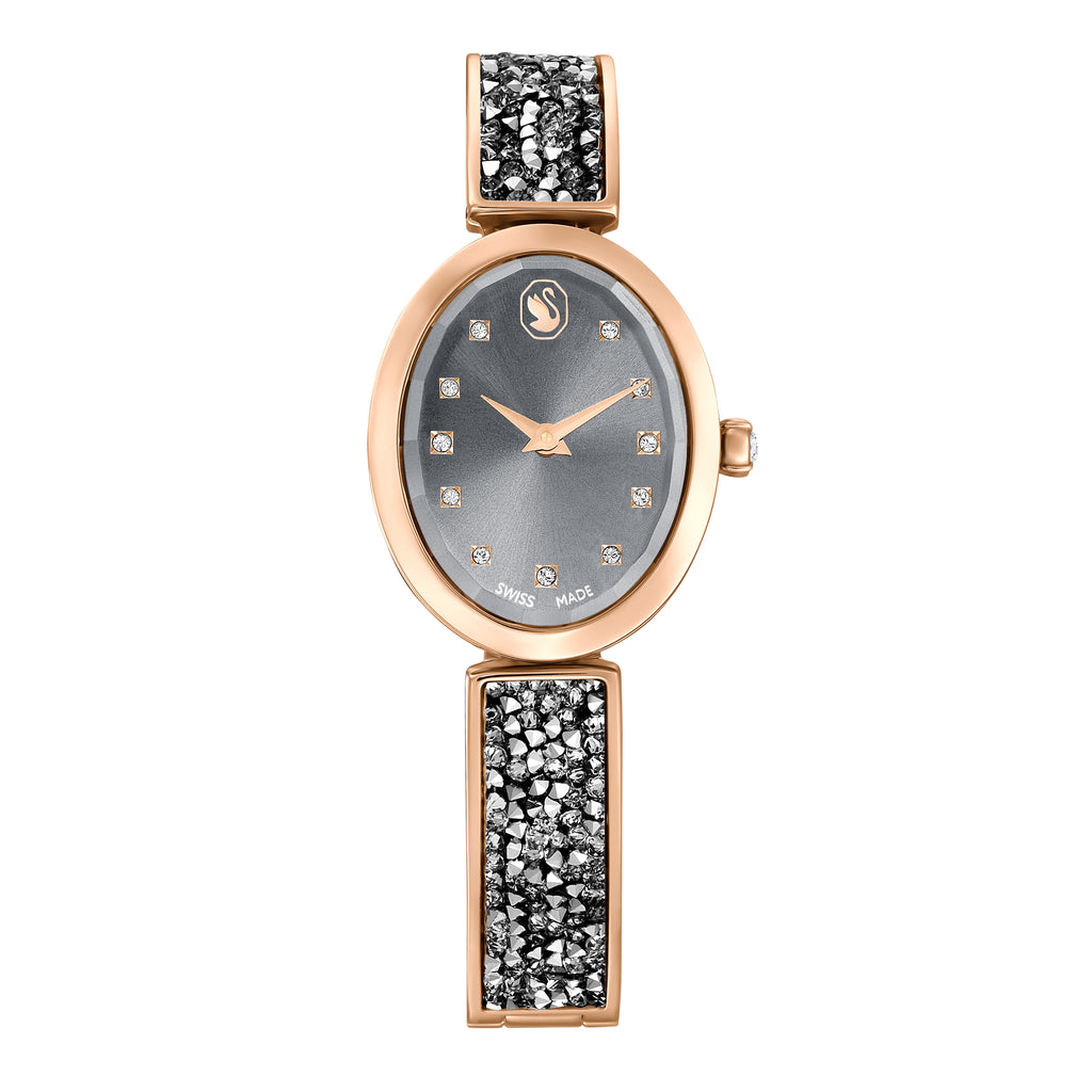 Crystal Rock Oval Saat, İsviçre Üretimi, Kristal Bileklik, Gri, Pembe Altin Tonu Kaplama 5711695