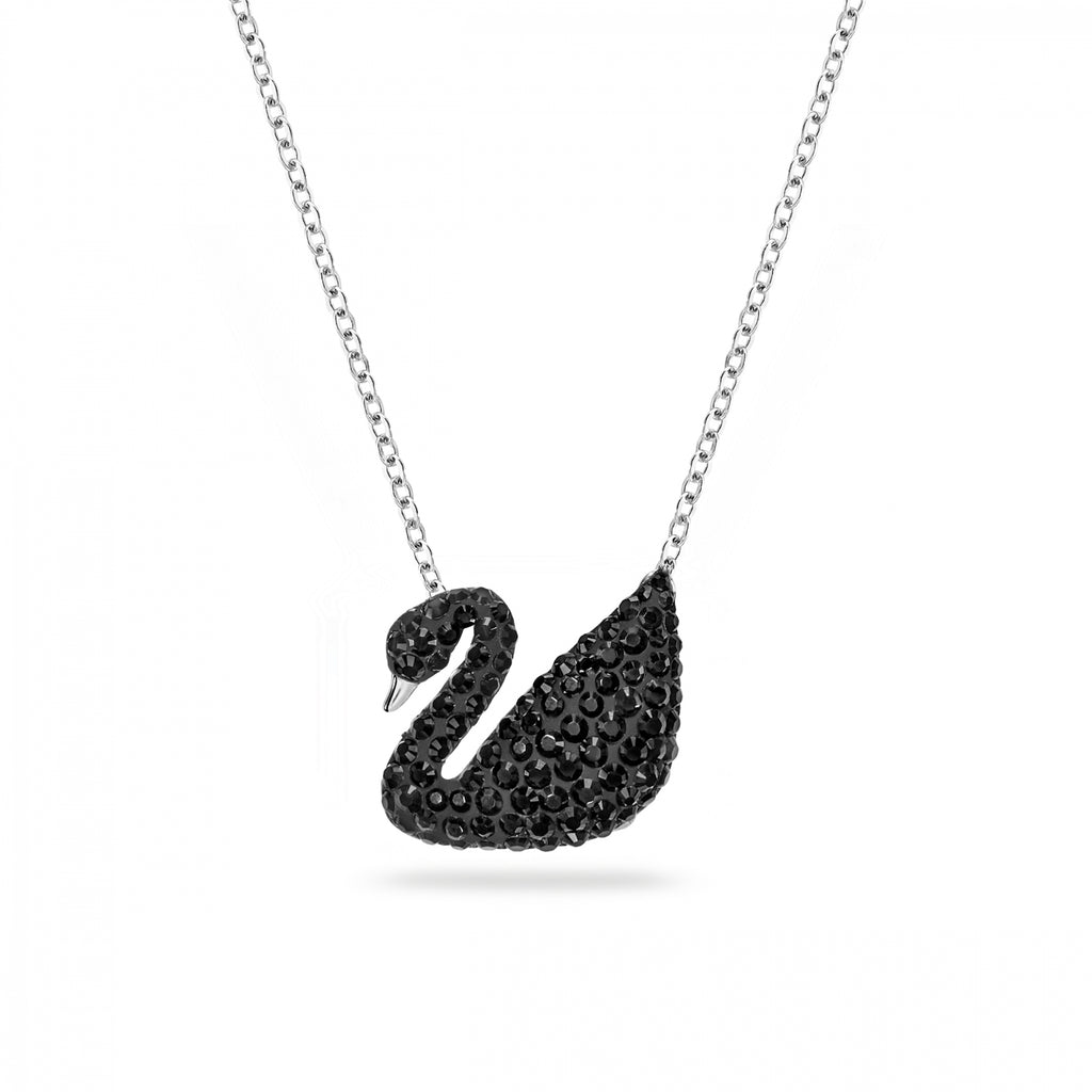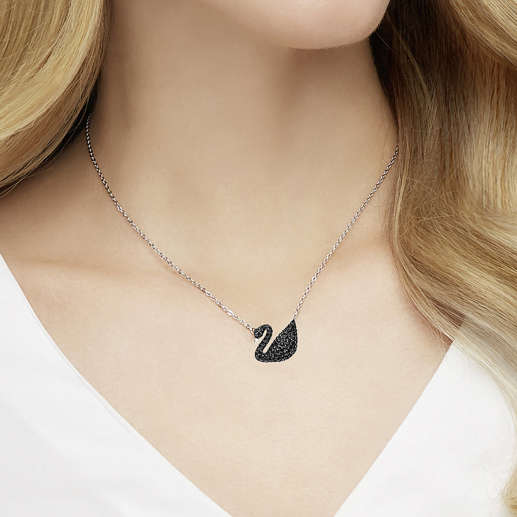 Iconic Swan Kolye, Large, Siyah, Rodyum Kaplama 5347329