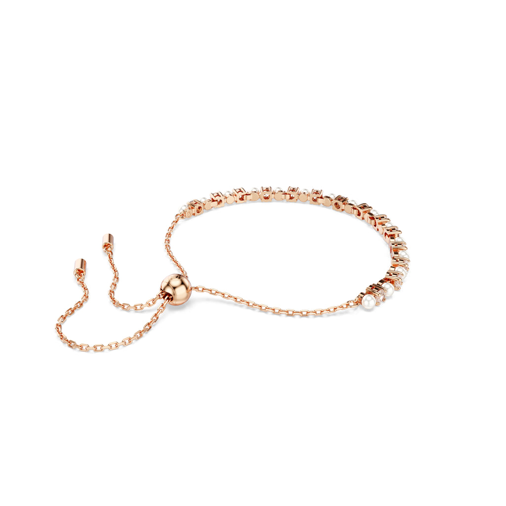 Matrix Bileklik, Kristal İnci, Round Cut, Beyaz, Pembe Altin Rengi Kaplama