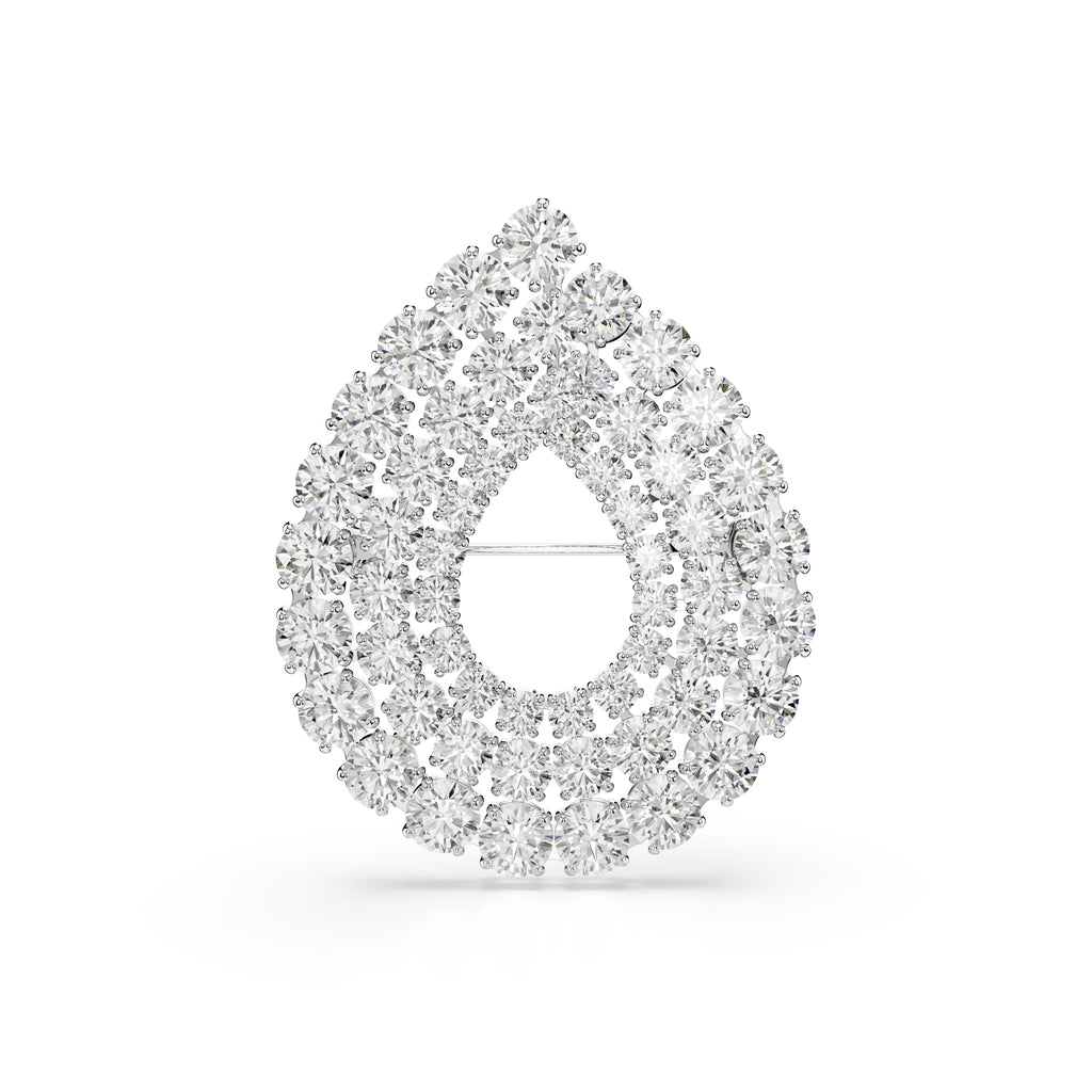 Matrix Broş, Yuvarlak Kesim, Beyaz, Rodyum Kaplama