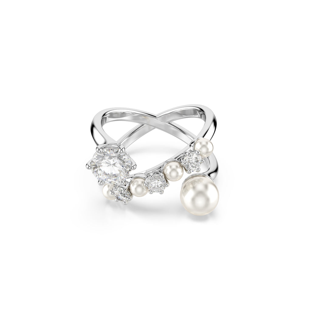 Matrix Kokteyl Yüzük, Kristal İnci, Yuvarlak Kesim, Beyaz, Rodyum Kaplama 5705612
