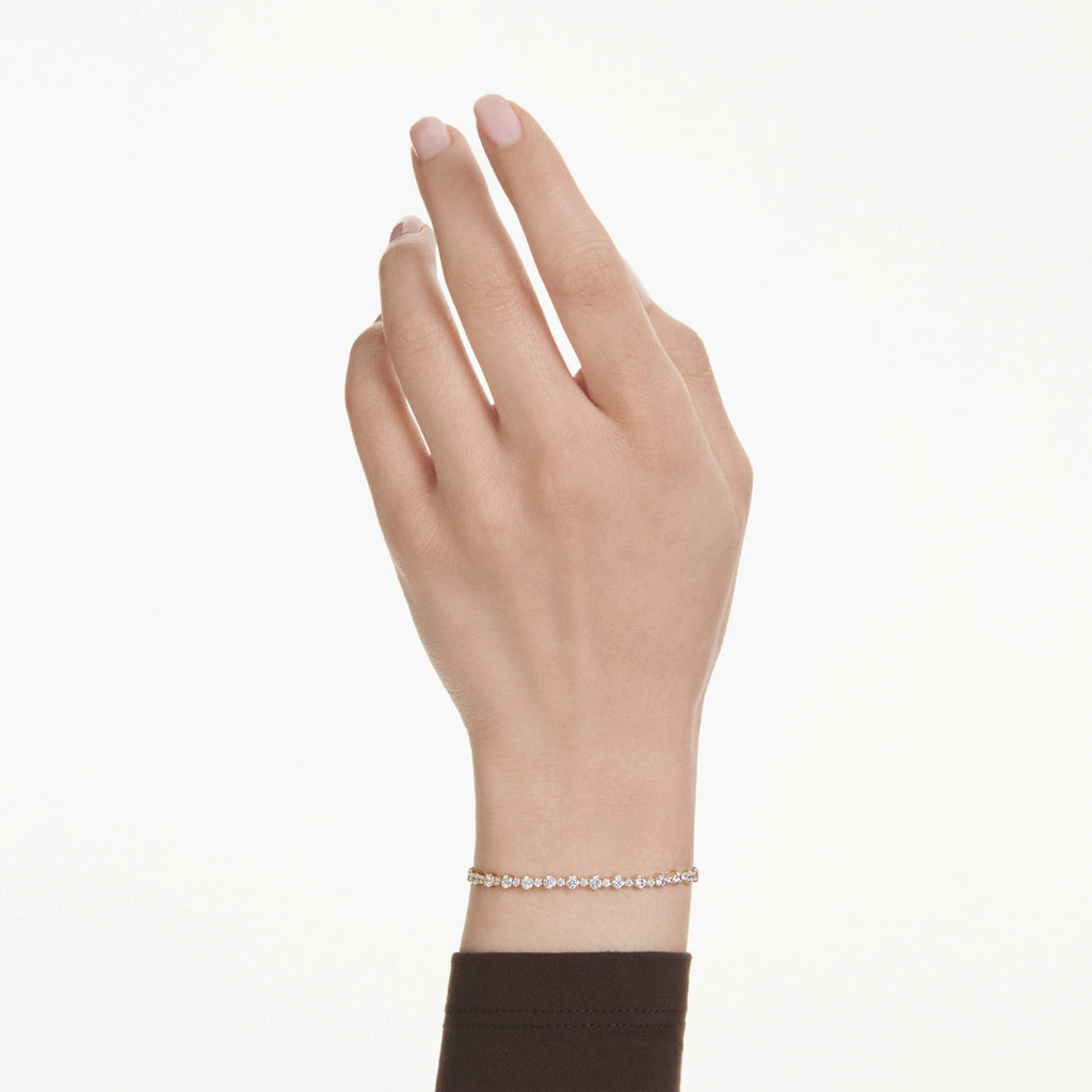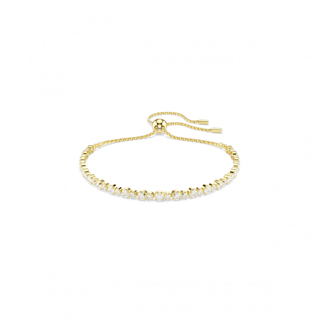 Matrix Tennis Bileklik, Yuvarlak Kesim, Beyaz, Sari Altin Rengi Kaplama 5730709