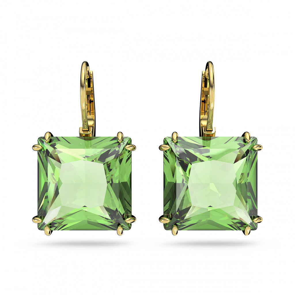 Zarif ve göz alıcı duruşunuzu gözler önüne serecek bu küpeler en sevdiğiniz parça olacak. Canlı yeşil tonlarda kare kesim kristal tasarımı içeren bu çift, altın renkli zarif kaplamasıyla dikkat çekiyor. En çarpıcı etkiyi yaratmak için, Millenia serisine ait aksesuarlarla birlikte kullanın. Bu küpeler, Collection III için tasarlanmış olan Millenia serisine aittir.