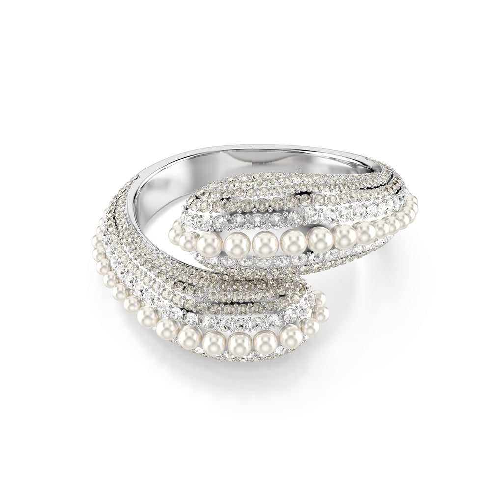 Sublima Kelepçe Bileklik, Statement, Kristal İnci, Round Cut, Beyaz, Rodyum Kaplama 5692108