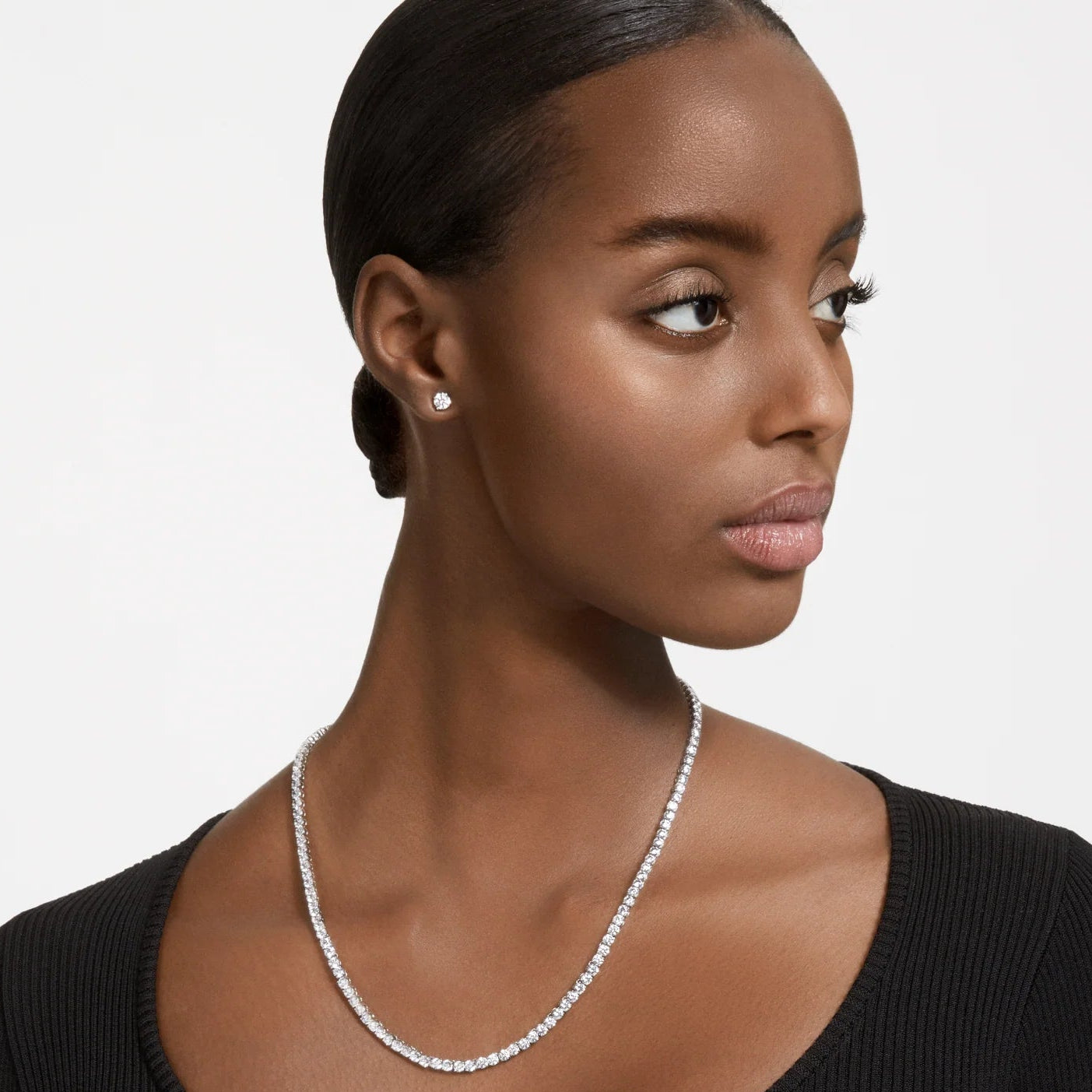 Matrix Tennis Kolye, Round Cut, Beyaz, Rodyum Kaplama